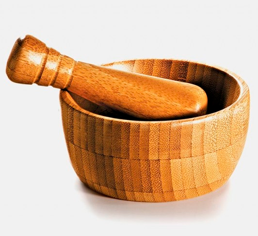 Amassador de Temperos em Bambu. Dimensões da base: 7,5Øx4,5cm Dimensões do pilão: 10cm. Personalização a laser na cumbuca.