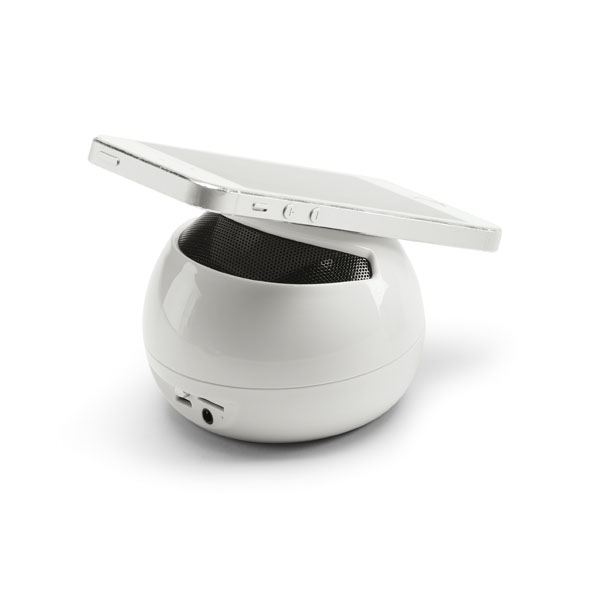 Caixa de som com microfone. ABS. Com bluetooth, ligação stereo 3,5 mm e leitor de cartões TF. Com 3W/4?. Autonomia até 3 h. Função para atender chamadas, controle de volume e conexão à playlist do dispositivo móvel. Com apoio antideslizante para celular. 97335