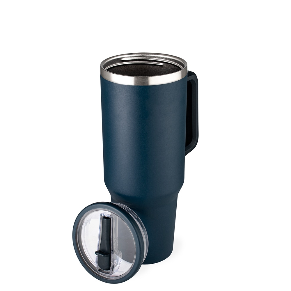 Caneca Térmica 1,2L em inox 304 com parede dupla, tampa acrílica rosqueável com bico flexível integrado. Acompanha um canudo 18817B