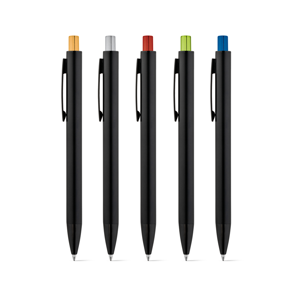 Caneta Esferográfica em alumínio com acabamento mate e botão com acabamento brilhante. Corpo com duplo acabamento. ø10 x 140 mm 91694. Personalização em Laser
