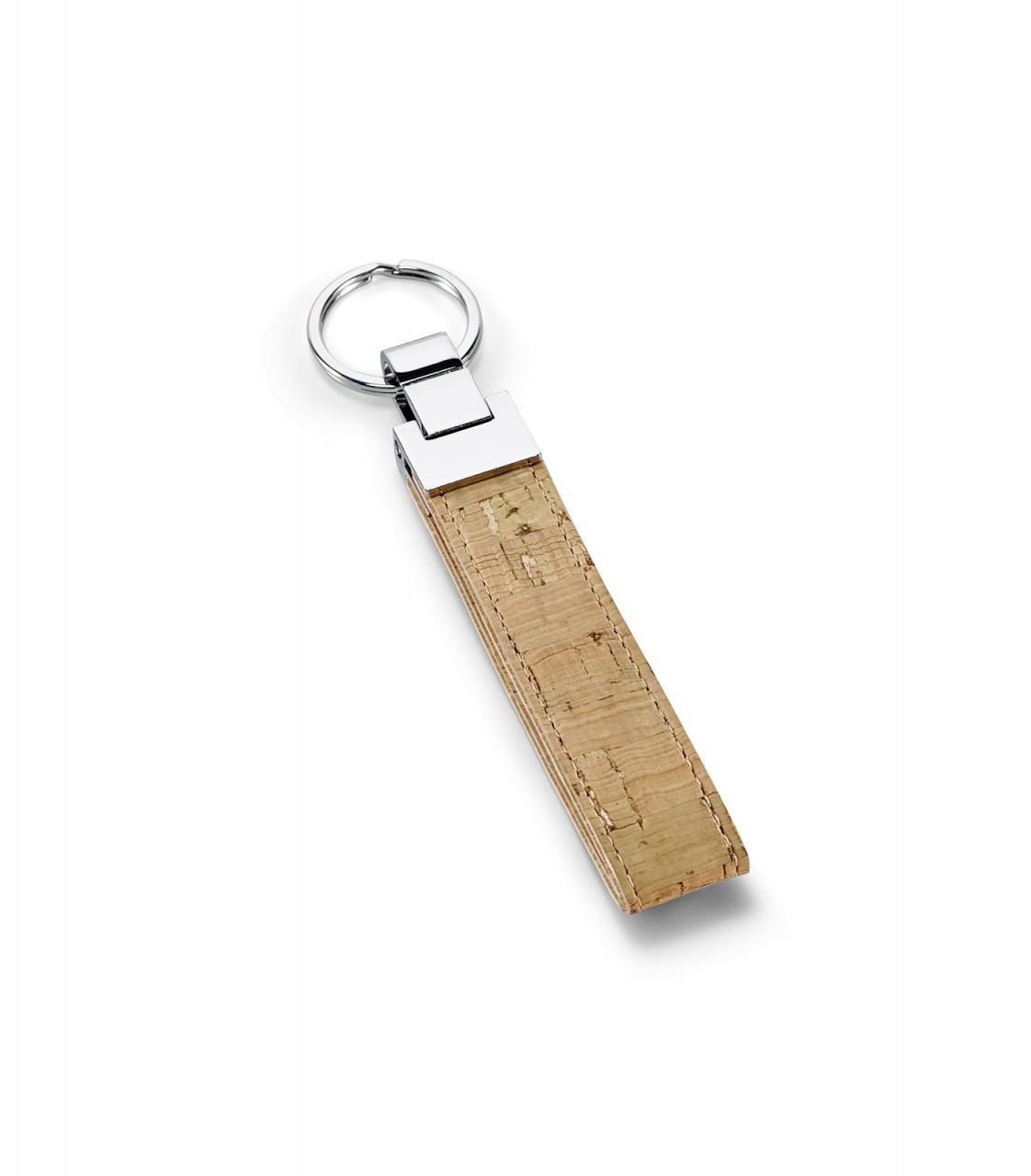 Chaveiro em Cortiça e metal. Fornecido em caixa kraft. 2 x 10 cm | Caixa: 5,4 x 12,5 x 1,6 cm. Personalização em Silk Screen 1 cor ou à laser. 93145