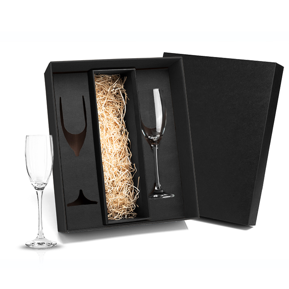 Jogo com 2 taças de Vidro para Champagne, com espaço para a garrafa. Capacidade: 140ml cada. Personalização em Silk screen.
