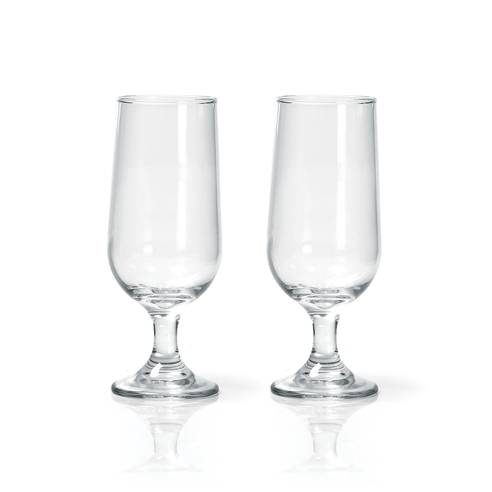 Jogo com 2 Copos de Vidro para Cerveja/Drinks. Capacidade: 300ml. Personalização: Laser.