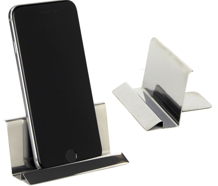 Porta celular de aço inox liso Altura: 4,50cm,Largura:2,60cm,Comprimento: 10cm,Peso aproximado: 0,045g. Personalização em Laser.