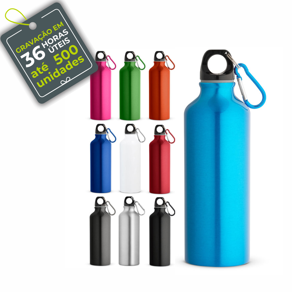 Squeeze de Alumínio com mosquetão. Capacidade: 500 ml. 94623. Personalização a Laser.