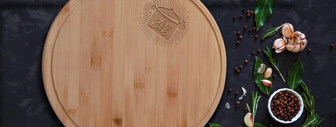 Tábua para Pizza/Frios em Bambu. Confeccionada com tripla camada invertida, para dar maior durabilidade e não deformar com o passar do tempo. Dimensões: 30x1,5cm. Personalização em Laser.